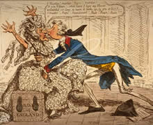 The Bank of England is the central bank of the UK and is at the heart of London’s financial district. The bank earned the nickname 'The Old Lady of Threadneedle Street’, following a cartoon in 1797 by Britain’s first political cartoonist James Gilray. |