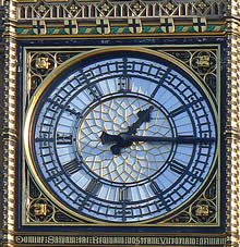 The clock face, 23-feet (7-metres) in diameter. The minute hands are made of copper and the hour hands are made of gunmetal. |