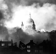 Paul's Cathedral is pictured during the great fire raid of Sunday