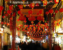 aroma-filled shops selling oriental produce. In late January, the Chinese New Year is celebrated in a colourful street festival, with massive paper-Mache animals dancing through the streets. |
